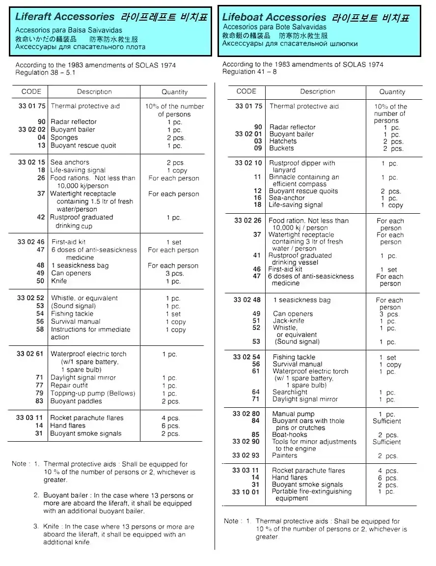 | Description | LIFERAFT AND LIFEBOAT ACCESSORIES LIST |