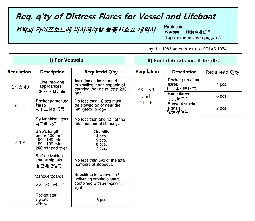 | Description | REQUIRED QUANTITY OF DISTRESS FLARES FOR VESSEL AND LIFEBOAT |