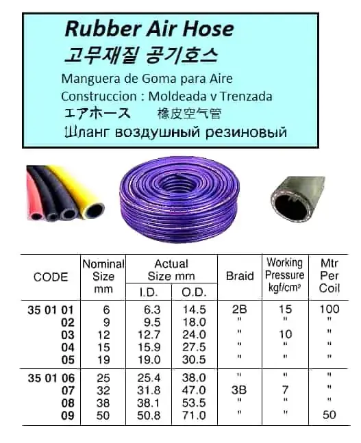 | Description | RUBBER AIR HOSE, 15KG 9 MM x 2B |