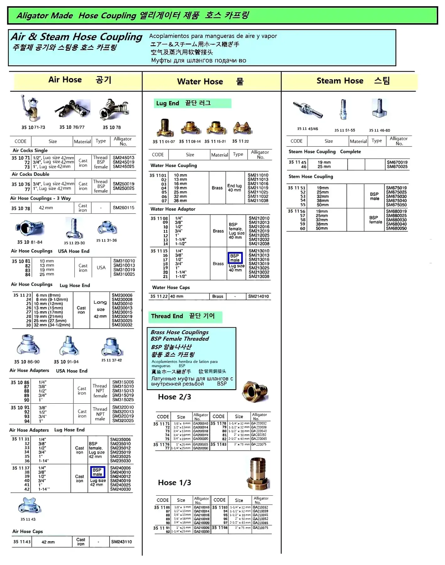 | Description | AIR HOSE COUPLING, CAST IRON, 42 MM LUG, 6MM (8MM), SM230006, ALLIGATOR |