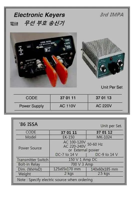 | Description | Old Model, ELECTRONIC KEYERS, AC100V |