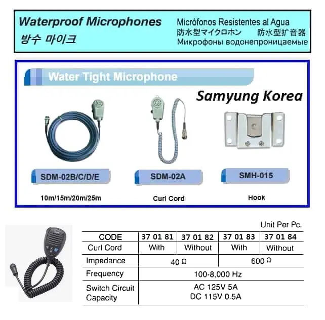 | Description | WATERPROOF MICROPHONE, WITH CURL CORD, 600 OHM |