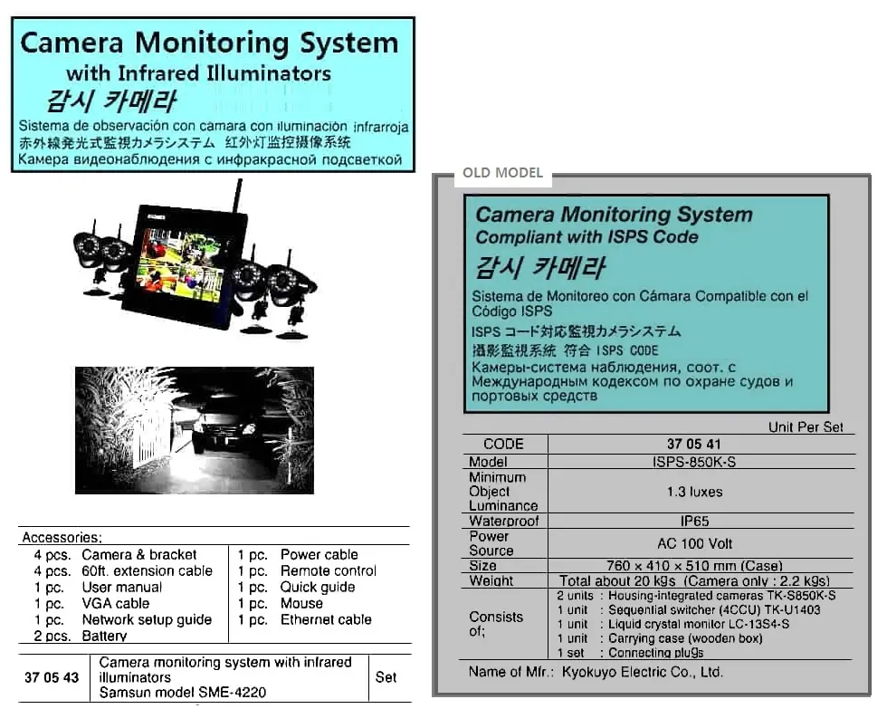 | Description | Old Model, CAMERA MONITORING SYS, AC 110V, ISPS-850K-S KYOKUYO ELECTRIC |
