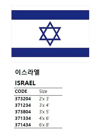 | Description | MERCHANT FLAG 3'x 4' BUNTING ISRAEL |