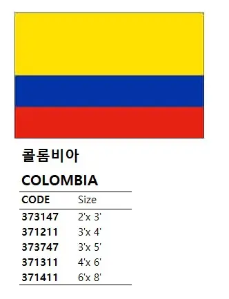 | Description | MERCHANT FLAG 4'x 6' BUNTING COLOMBIA |