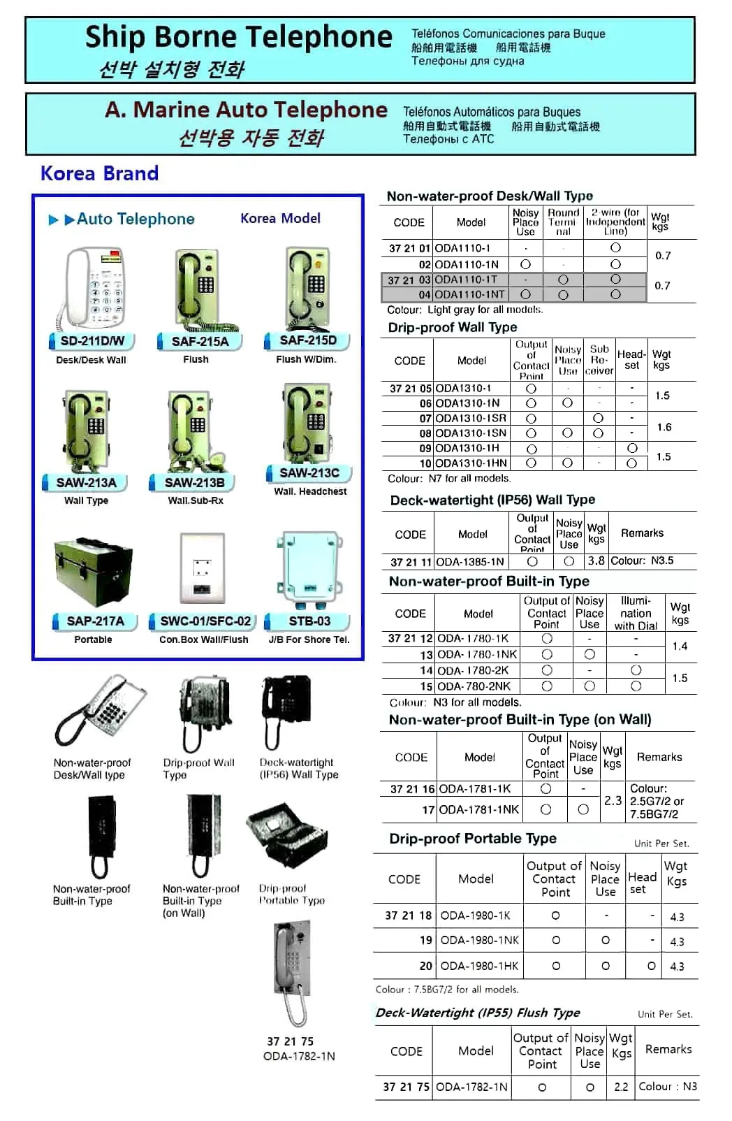 | Description | MARINE AUTO TELEPHONE, NON-WATER-PROOF, BUILT-IN TY, ODA-1780-2NK |