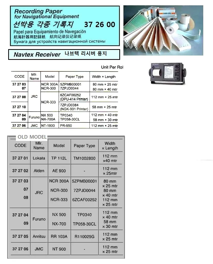 | Description | NAVTEX RECORDING PAPER FOR JRC NCR-300A #52ZPMB00001, 80 mm x 25 mtr |