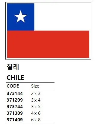 | Description | NATIONAL FLAG, SIZE:2'x 3', CHILE |