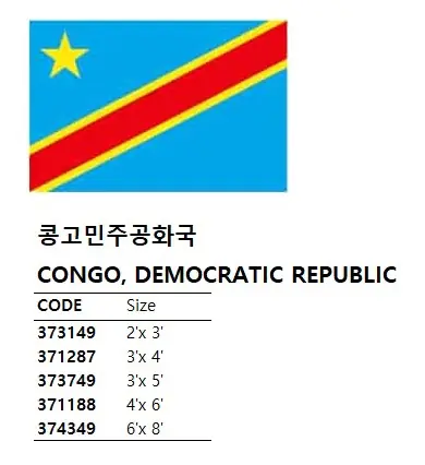 | Description | NATIONAL FLAG, SIZE:2'x 3', CONGO, DEMOCRATIC REPUBLIC |