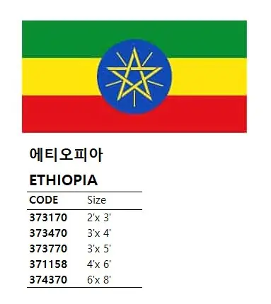 | Description | NATIONAL FLAG, SIZE:2'x 3', ETHIOPIA |