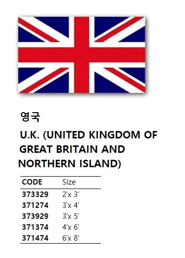 | Description | NATIONAL FLAG, SIZE:2'x 3', U.K. (UNITED KINGDOM OF GREAT BRITAIN AND NORTHERN ISLAND) |