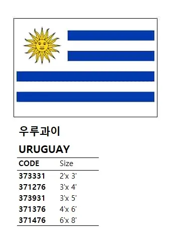 | Description | NATIONAL FLAG, SIZE:2'x 3', URUGUAY |