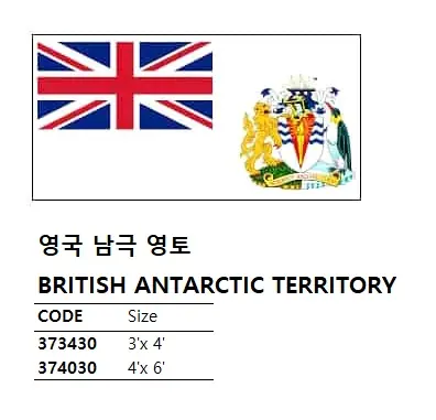 | Description | NATIONAL FLAG, SIZE:3'x 4', BRITISH ANTARCTIC TERRITORY |
