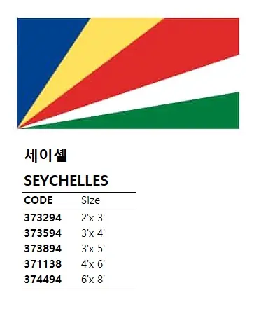 | Description | NATIONAL FLAG, SIZE:3'x 4', SEYCHELLES |