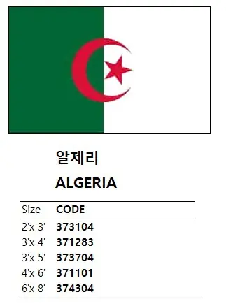 | Description | NATIONAL FLAG, SIZE:3'x 5', ALGERIA |