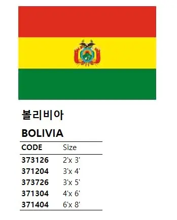 | Description | NATIONAL FLAG, SIZE:3'x 5', BOLIVIA |