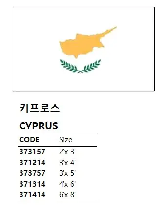 | Description | NATIONAL FLAG, SIZE:3'x 5', CYPRUS |