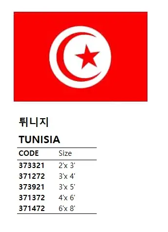 | Description | NATIONAL FLAG, SIZE:3'x 5', TUNISIA |