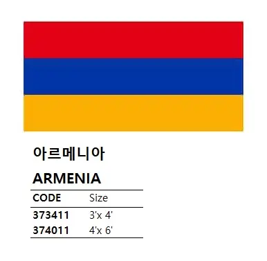| Description | NATIONAL FLAG, SIZE:4'x 6', ARMENIA |