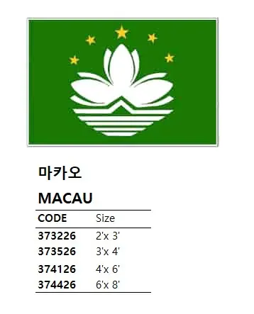 | Description | NATIONAL FLAG, SIZE:4'x 6', MACAU |