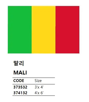 | Description | NATIONAL FLAG, SIZE:4'x 6', MALI |