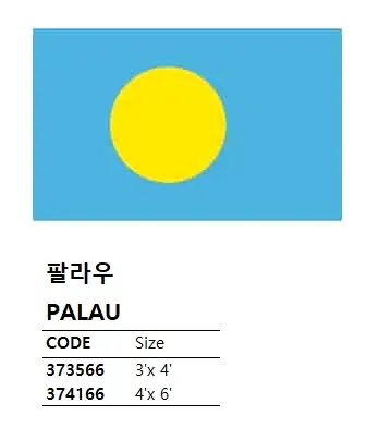 | Description | NATIONAL FLAG, SIZE:4'x 6', PALAU |