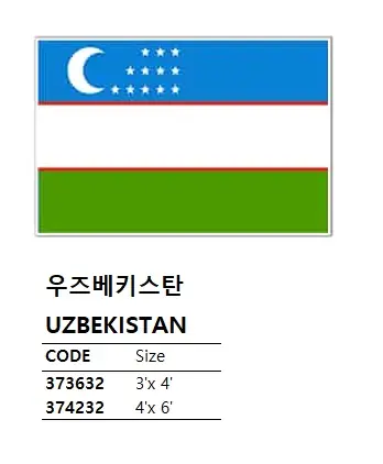 | Description | NATIONAL FLAG, SIZE:4'x 6', UZBEKISTAN |