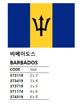 | Description | NATIONAL FLAG, SIZE:6'x 8', BARBADOS |