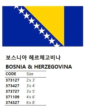 | Description | NATIONAL FLAG, SIZE:6'x 8', BOSNIA & HERZEGOVINA |