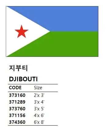 | Description | NATIONAL FLAG, SIZE:6'x 8', DJIBOUTI |