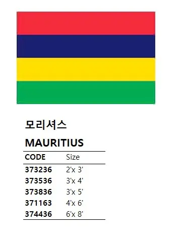 | Description | NATIONAL FLAG, SIZE:6'x 8', MAURITIUS |
