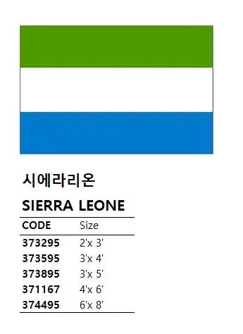 | Description | NATIONAL FLAG, SIZE:6'x 8', SIERRA LEONE |