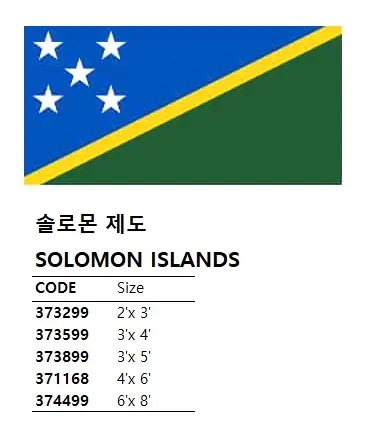 | Description | NATIONAL FLAG, SIZE:6'x 8', SOLOMON ISLANDS |