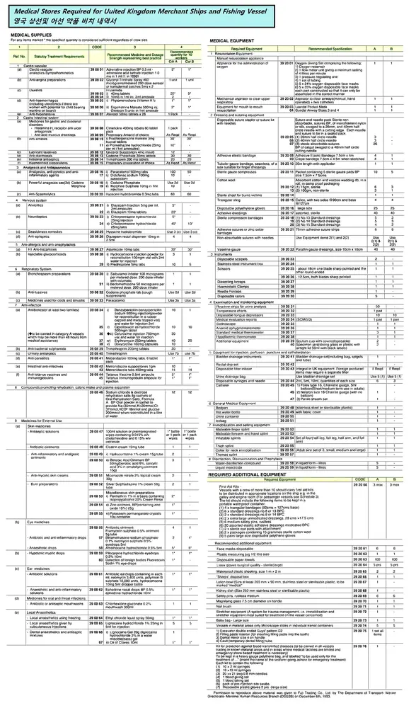 MEDICAL LIST, MEDICAL STORES REQUIRED FOR UNITED KONGDOM MERCHANT SHIPS AND FISHING VESSEL