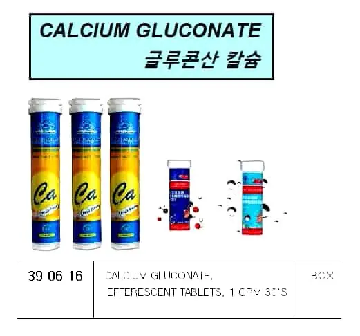 | Description | CALCIUM GLUCONATE, EFFERESCENT TABLETS, 1 GRM 30'S |