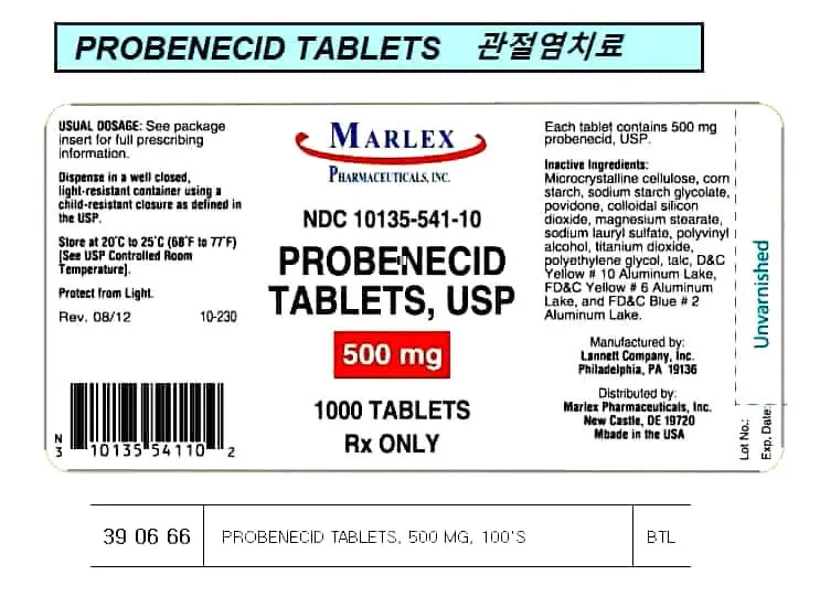 | Description | PROBENECID TABLETS, 500 MG, 100'S |