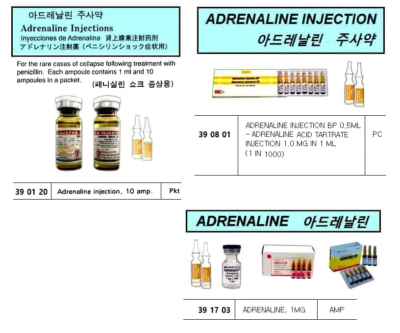 | Description | ADRENALINE INJECTION BP 0.5ML - ADRENALINE ACID TARTRATE INJECTION 1.0 MG IN 1 ML (1 IN 1000) |