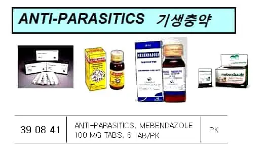 | Description | ANTI-PARASITICS, MEBENDAZOLE 100 MG TABS, 6 TAB/PK |