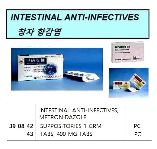 | Description | INTESTINAL ANTI-INFECTIVES, METRONIDAZOLE TABS, 400 MG TABS |