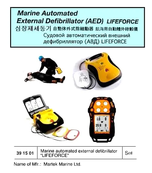 | Description | MARINE AUTOMATED EXTERNAL DEFIBRILLATOR (AED) "LIFEFORCE" |