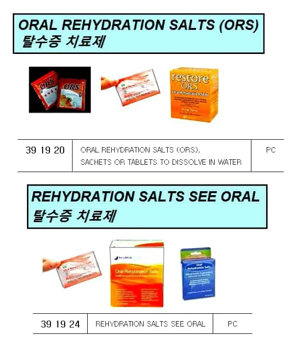 | Description | ORAL REHYDRATION SALTS (ORS), SACHETS OR TABLETS TO DISSOLVE IN WATER |