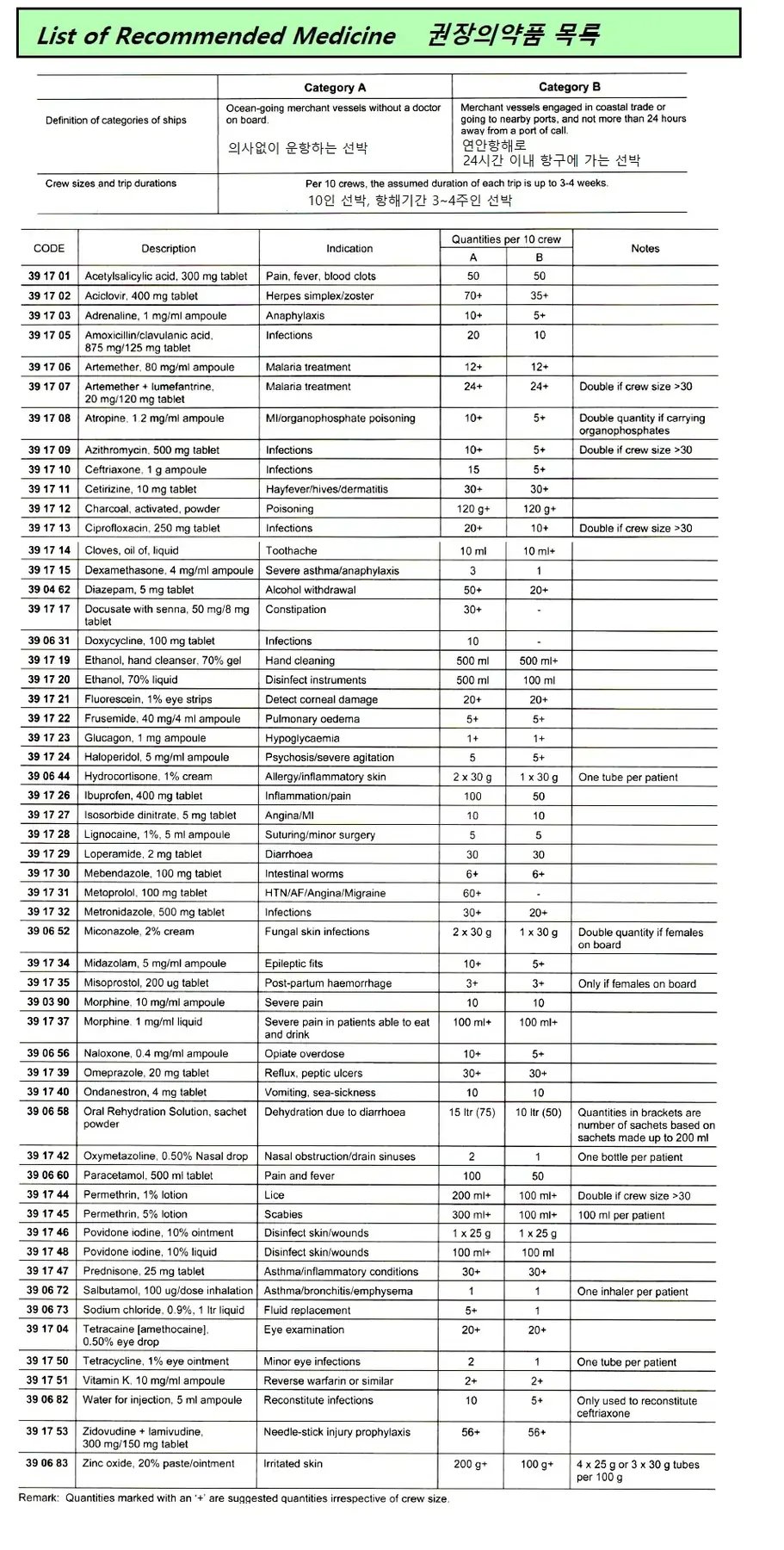 List of Recommended Medicines, 10 crew 3~4wkk trip
