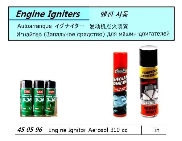 | Description | ENGINE IGNITOR AEROSOL 300 CC |