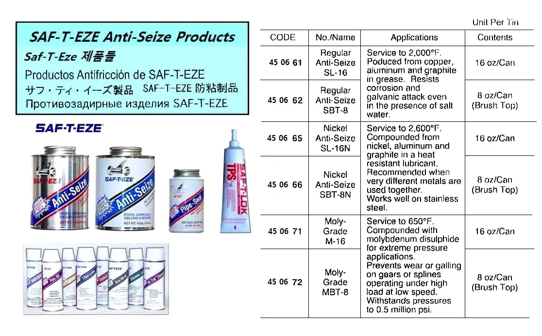 | Description | SAF-T-EZE ANTI-SEIZE, REGULAR ANTI-SEIZE SL-16, 16 OZ |