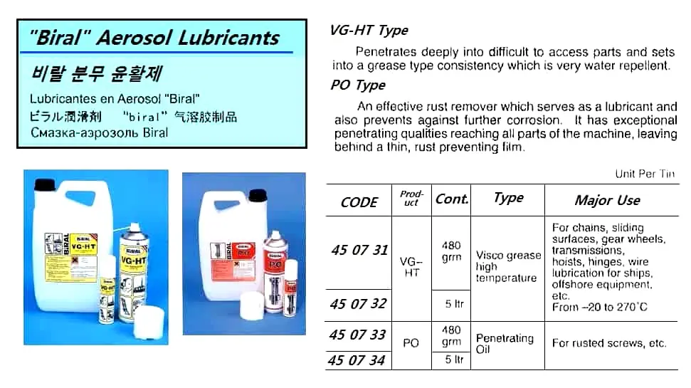 | Description | LUBRICANT, BIRAL, PO AEROSOL 480 GRM |
