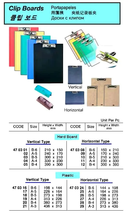 | Description | VERTICAL HARD BOARD CLIP BOARD, B-5 |