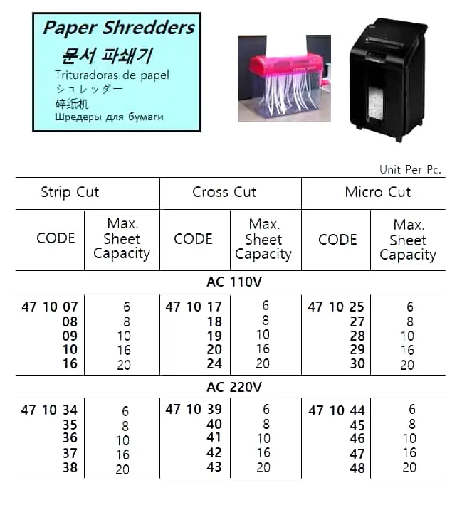 | Description | PAPER SHREDDER, 110V, CROSS CUT, MAX 20 SHEET |