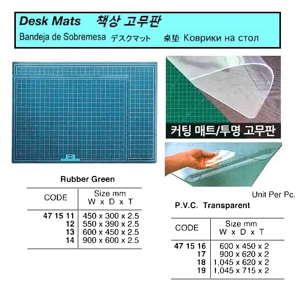 | Description | DESK MAT, PVC TRANSPARENT 600 x 450 x 2 MM |