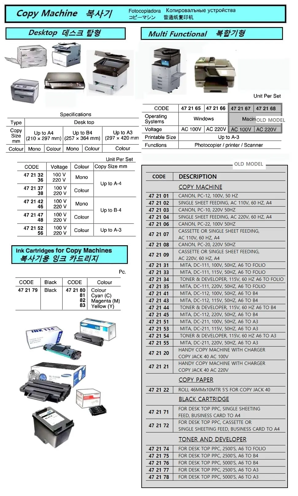 | Description | Old Model, COPY MACHINE, TONER & DEVELOPER, 115V, 60 HZ A6 TO A3 |