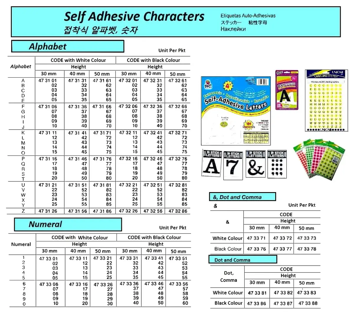 | Description | SELF ADHESIVE CHARACTER, BLACK, H= 30 MM, 10'S/PKT, V |